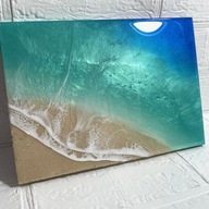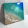 ブルーからエメラルドグリーンへのグラデーションに、白波が加わり、海岸に打ち寄せるリアルな海を表現。